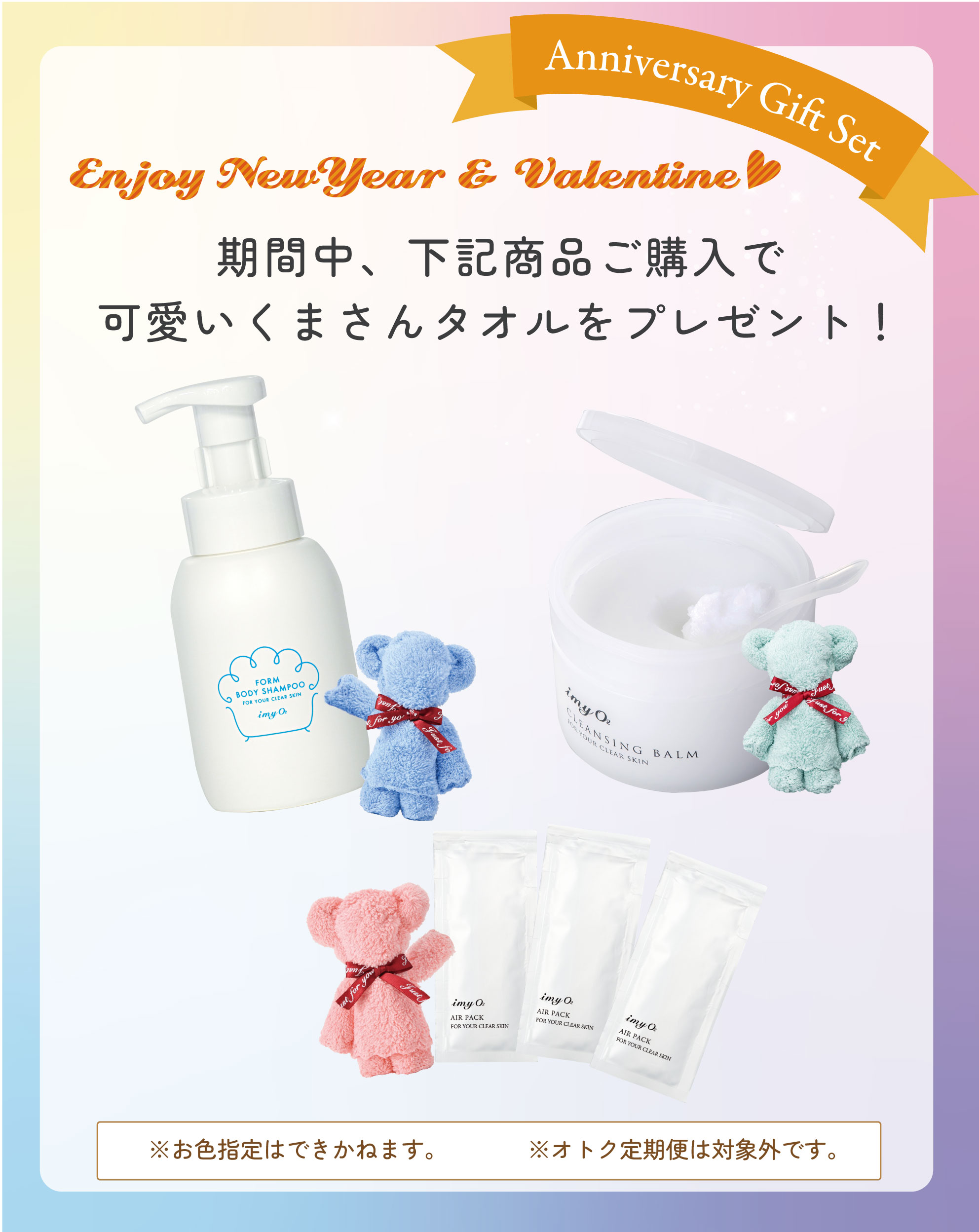 期間中、対象商品をご注文いただくと可愛いフワフワくまさんタオルが付いてきます。